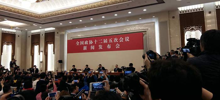 大会新闻发言人王国庆向中外媒体介绍会议有关情况并回答记者提问。全国政协十二届五次会议
