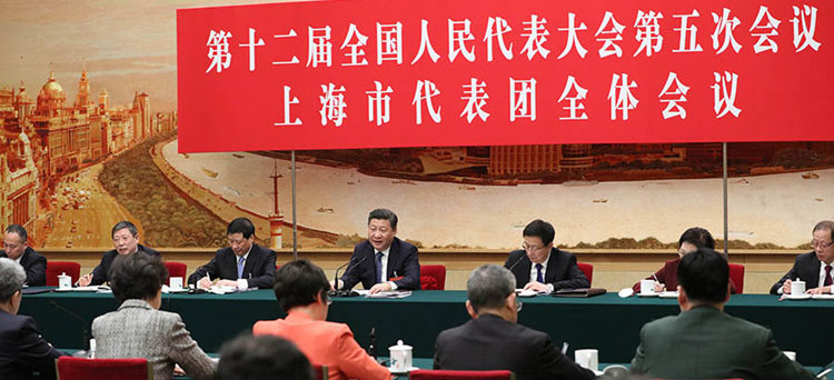 习近平充分肯定一年来上海围绕创新驱动发展、优化经济结构、深化改革等方面取得的新成就。上海代表团