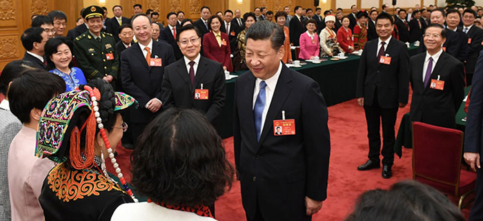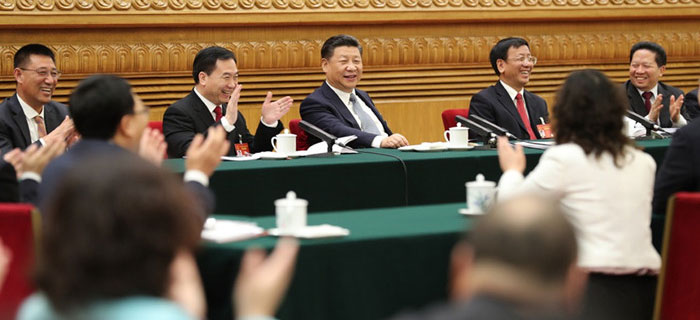3月7日上午,中共中央总书记、国家主席、中央军委主席习近平来到十二届全国人大五次会议辽宁代表团参加审议。习近平,辽宁代表团,审议
