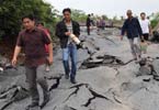 5月22日,广西省全州县通往东山瑶族乡的全七公路一处路段被山洪冲刷,路面损毁严重,行人走在凹包不平的公路上。当日,广西全州县普降大到暴雨,局部大暴雨,部分乡镇发生较严重的洪涝灾害,农田被淹和房屋倒塌,灌溉渠道等水利设施损失严重。广西,山洪,暴雨,乡镇