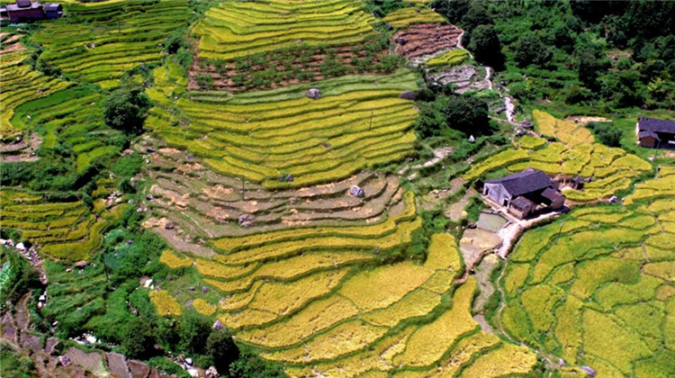秋高气爽时节,贵州省榕江县水稻陆续成熟,层层叠叠的梯田透露着丰收的气息。