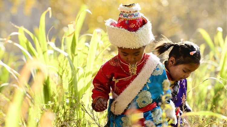 深秋时节,地处青海省海南藏族自治州贵德县尕让乡松巴村的松巴藏寨层林尽染,美丽如画。