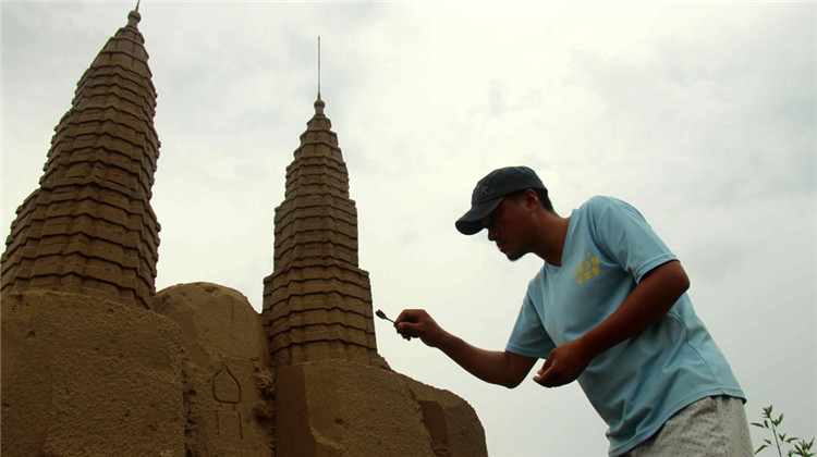 沙雕艺术家正在对30余组沙雕作品精雕细琢,预计8月上旬正式对外开放。