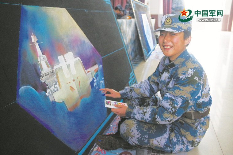 因为有绘画特长,祁逸菲多次获得“出公差”的机会:设计制作军营黑板报。见到新训大队领导时,她总会不经意给领导“吹风”,透露自己想到陆战队的愿望。