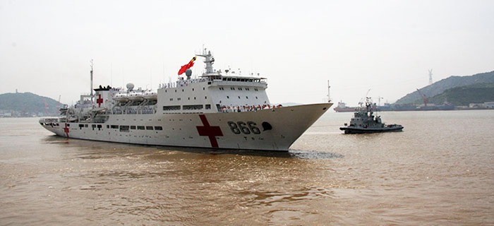 当地时间23日,参加“环太平洋—2016”演习的中国海军和平方舟医院船,在向美国夏威夷航渡期间组织开展了医疗救援演练。这是和平方舟医院船起航后首次舰机协同在太平洋海域实施人道主义救援演练。和平方舟,环太军演,,环太平洋—2016,西安舰