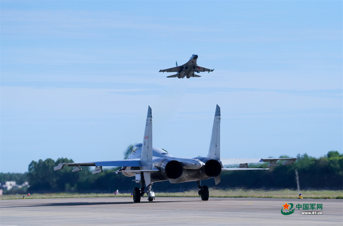 战机接续起飞。栾铖摄
