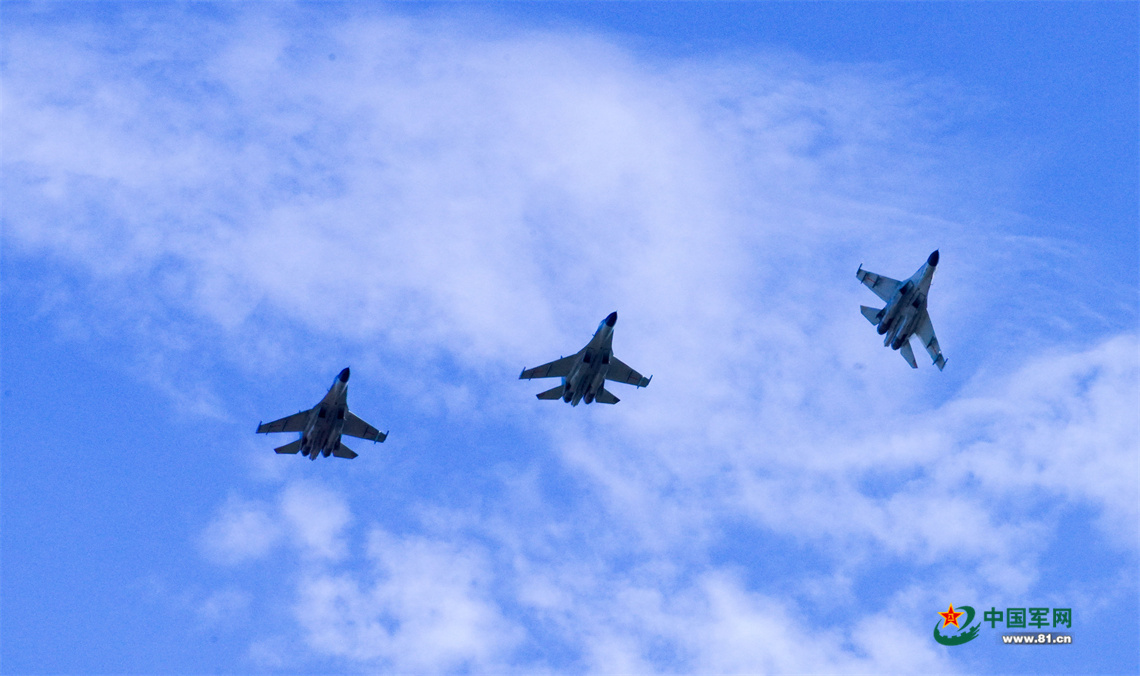 战机编队奔赴训练空域。栾铖摄