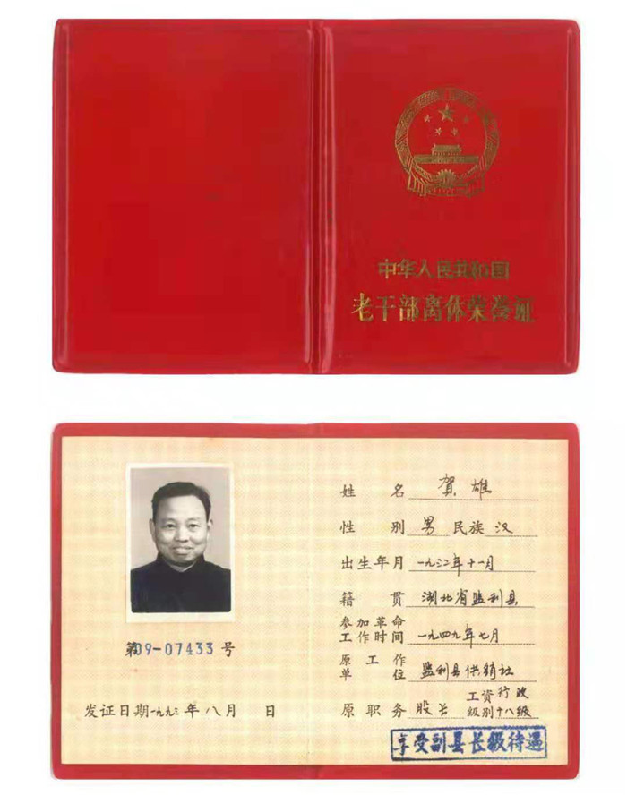贺雄的《老干部离休荣誉证》