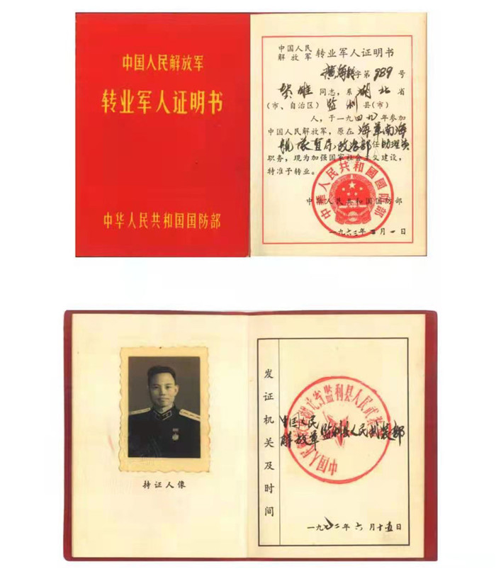 贺雄的《转业军人证明书》