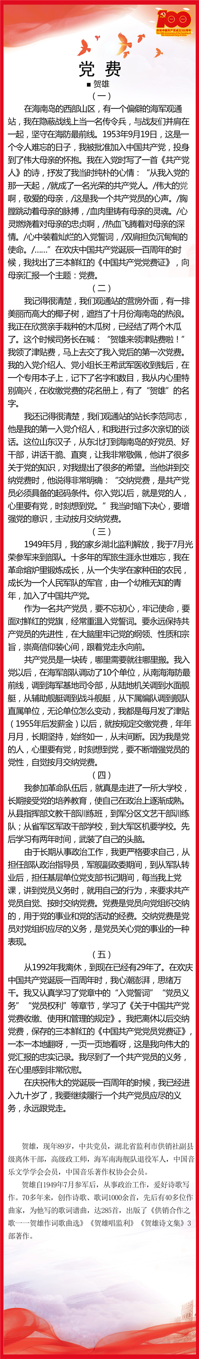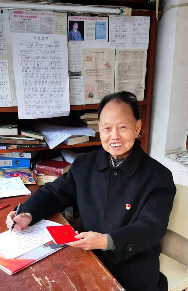 贺雄手捧着鲜红的《中国共产党党费证》,