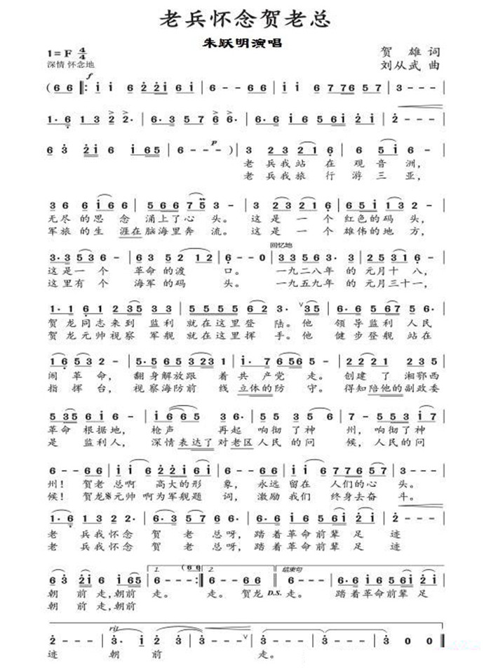 请听贺雄作词歌曲《老兵怀念贺老总》