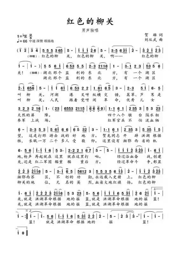 请听贺雄作词歌曲《红色的柳关》
