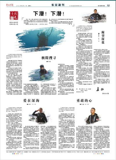 两年后,章朋飞在同期战友里后来居上,水下沉物探摸、电焊切割、沉船爆破等实战技能练得炉火纯青,个人下潜纪录也从最初的5米、10米突破到80米。