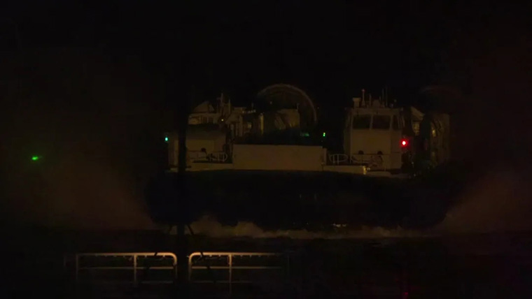 初冬时节,南海某海域,一场实战背景下的气垫艇艇长全训考核拉开序幕。夜色笼罩下,综合登陆舰昆仑山舰坞舱内,士官艇长李桃源驾驶气垫登陆艇缓缓垫升,裹挟着水雾从坞舱呼啸而出。