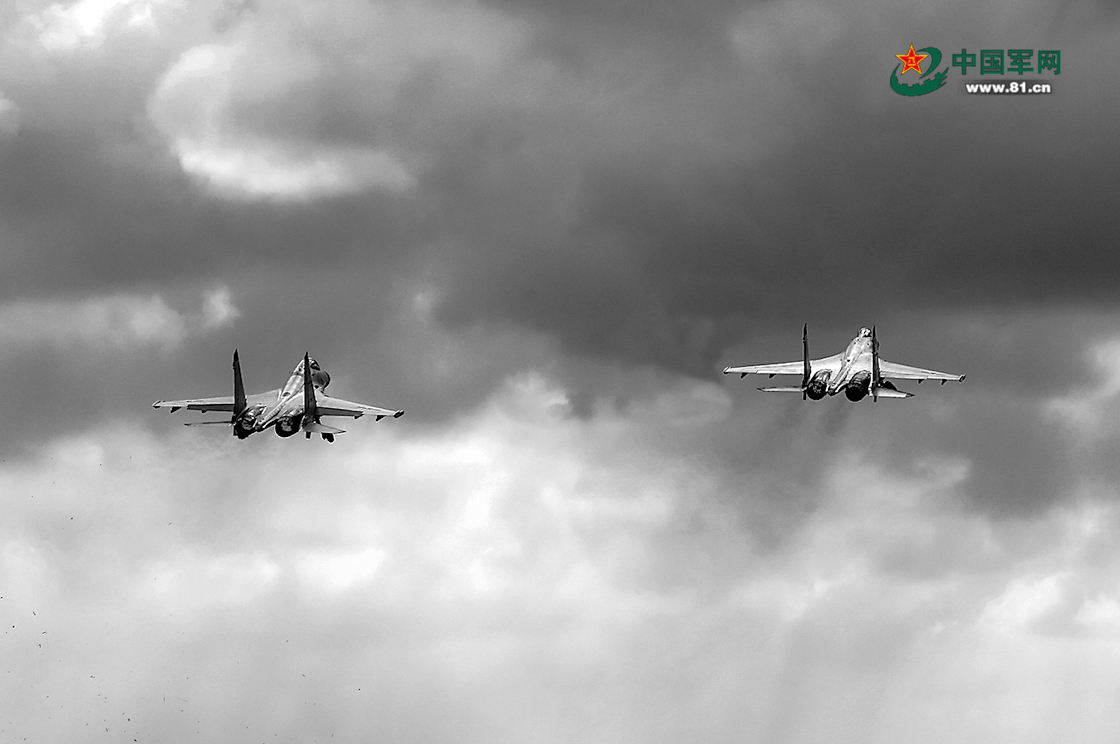 双机编队飞赴目标空域。