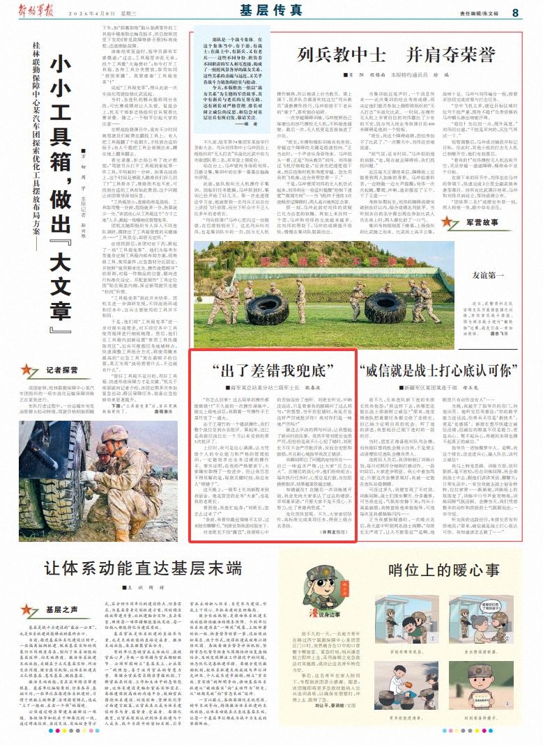 就这么平淡的两句问话,让我想起了新兵时的往事。虽然平常刘班长也很严厉,但恰恰是我不小心犯了错时,刘班长不仅不会严厉批评我,反而会安慰和鼓励,并且耐心地指导我改正错误。
