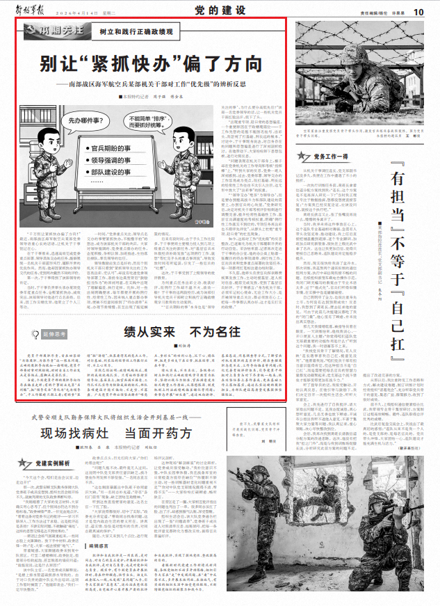 “千万别让紧抓快办偏了方向!”最近,南部战区海军航空兵某部党委领导语重心长的话语,让机关于干事铭记在心。