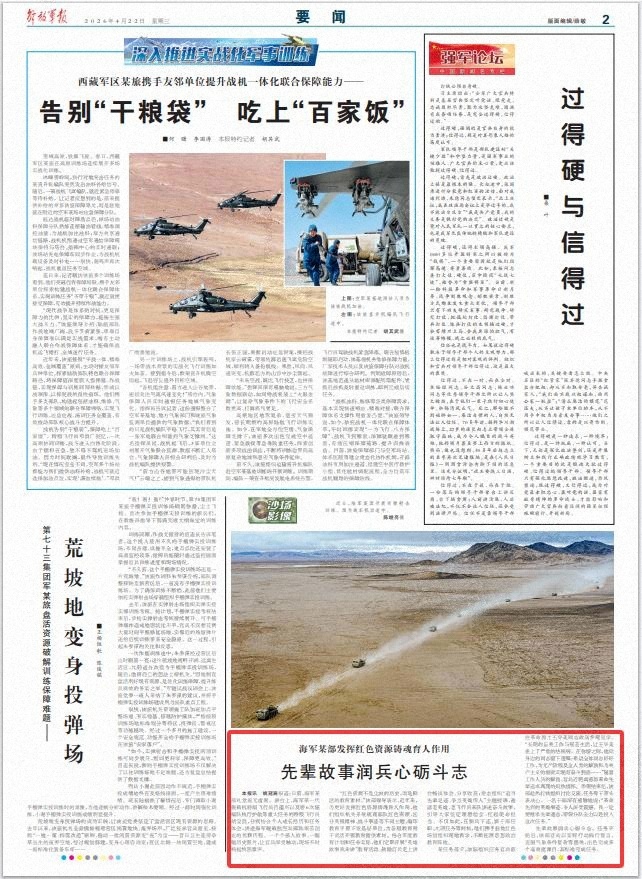 先辈故事润兵心砺斗志。任务开始后,该部官兵以实际行动践行誓言,克服气象条件复杂等困难,出色完成多个高难度课目,高标准完成任务。