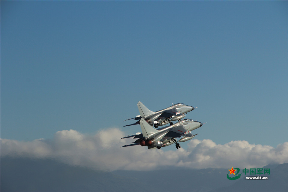 “起飞!”,随着塔台指挥员一声令下,起飞线上,飞行员目视前方松刹车、前推油门、紧拉驾驶杆,整套动作一气呵成,两架战机加力起飞,直冲云霄。