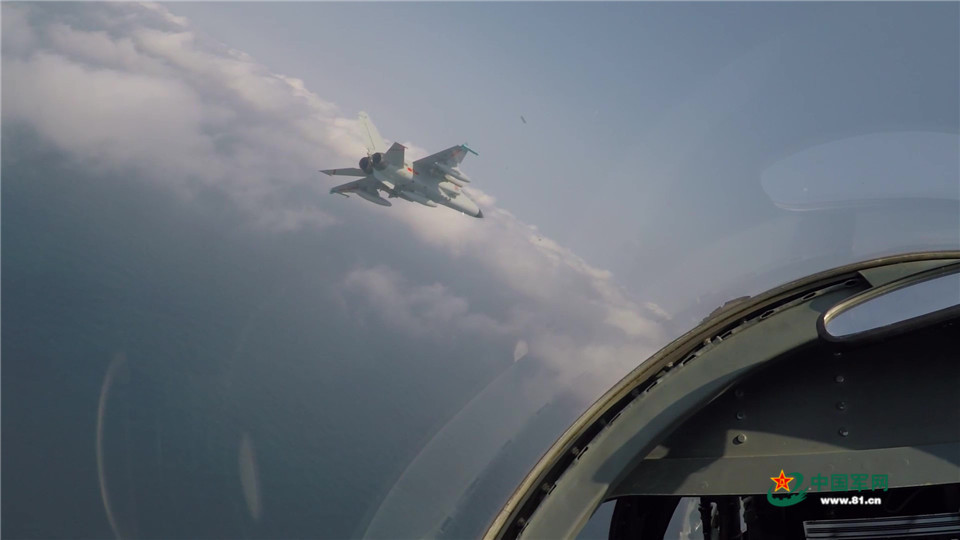 经过数分钟的超低空掠海飞行,首批飞行编队成功躲避“敌方”雷达,到达作战空域,跃升,搜索,截获……飞行员精准锁定空中目标,迅速建立攻击航线,果断按下导弹发射按钮,对“敌”目标实施打击……