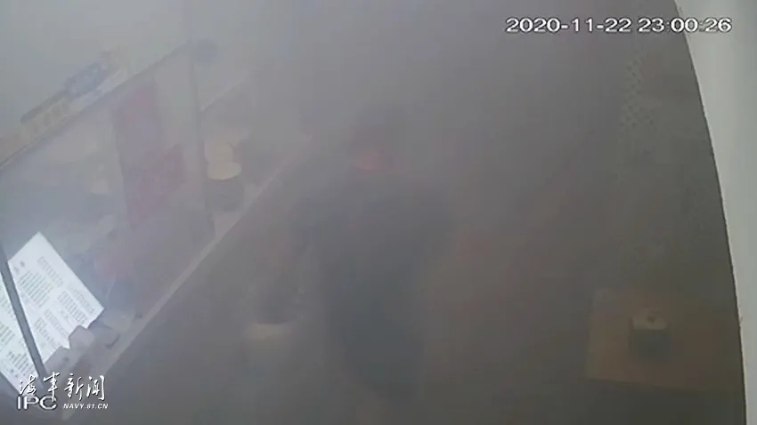 看到没有危险了,茆轩就悄悄离开。虽然当时店里烟雾弥漫,但他拎着煤气罐向外走的那一幕还是被记录下来。