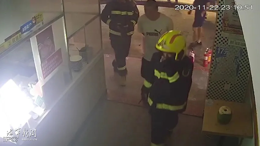 上士茆轩是该支队宿迁舰鱼雷班班长。11月22日晚,他结束出差后,来到一家小吃店就餐。突然间,“砰”的一声响,店里操作间起火了。