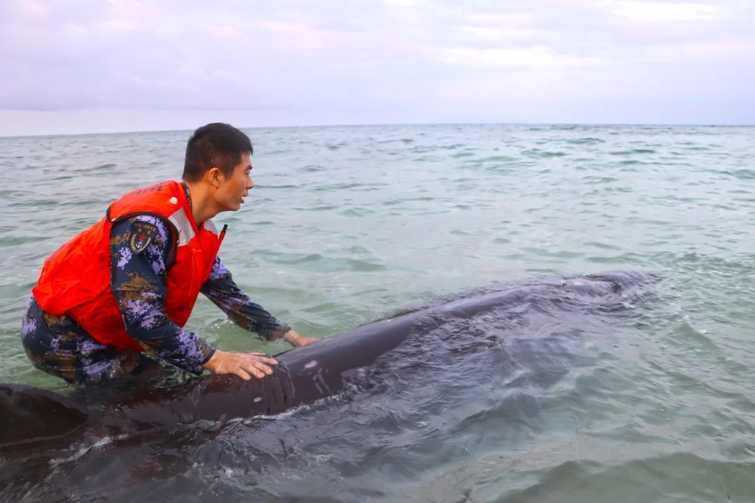 考虑到搁浅海豚附近礁盘很大,大型船只无法驶入。为保障安全,他们协调三沙市政府和海警局备便海警船、气垫艇增援。