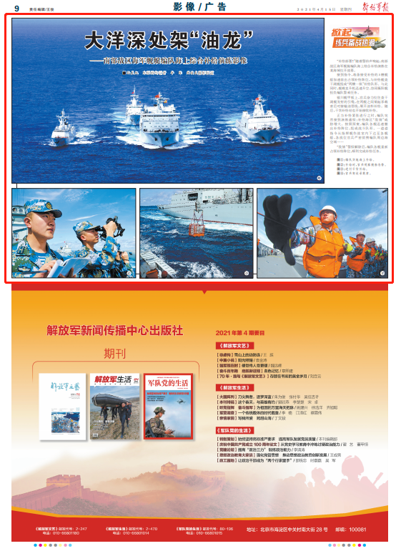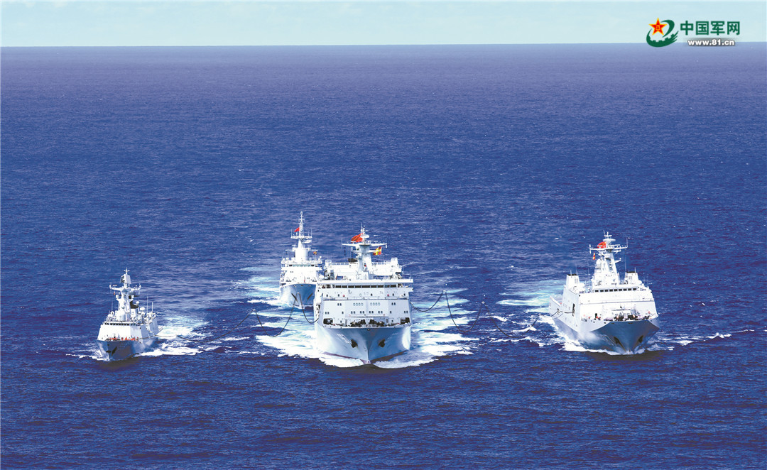 “敌情”警报解除后,编队各舰重新占领补给阵位,顺利完成补给任务。