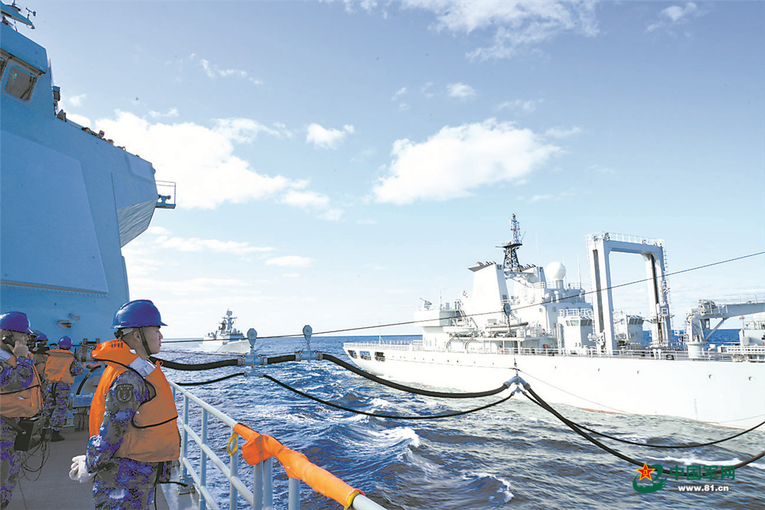 参演舰艇进行海上补给。