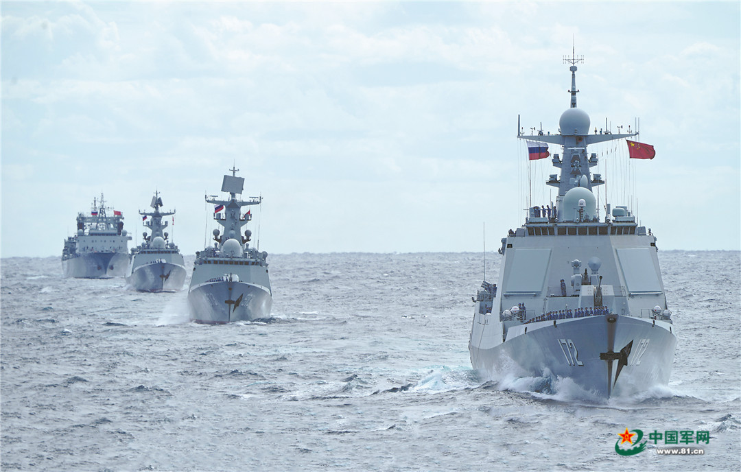 中俄舰艇编队在西太平洋联合巡航。