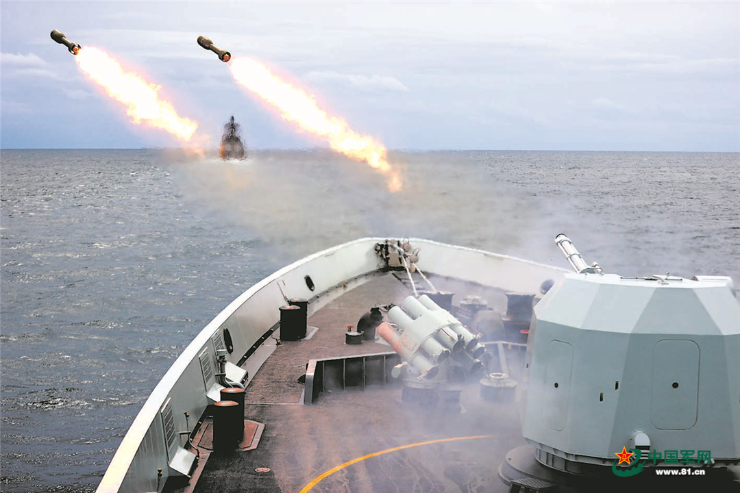 参演舰艇实射火箭深弹。