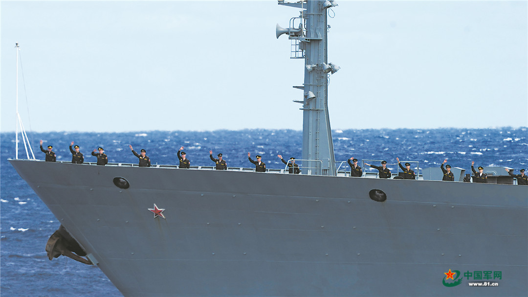 俄海军官兵向中方参演官兵挥手告别。