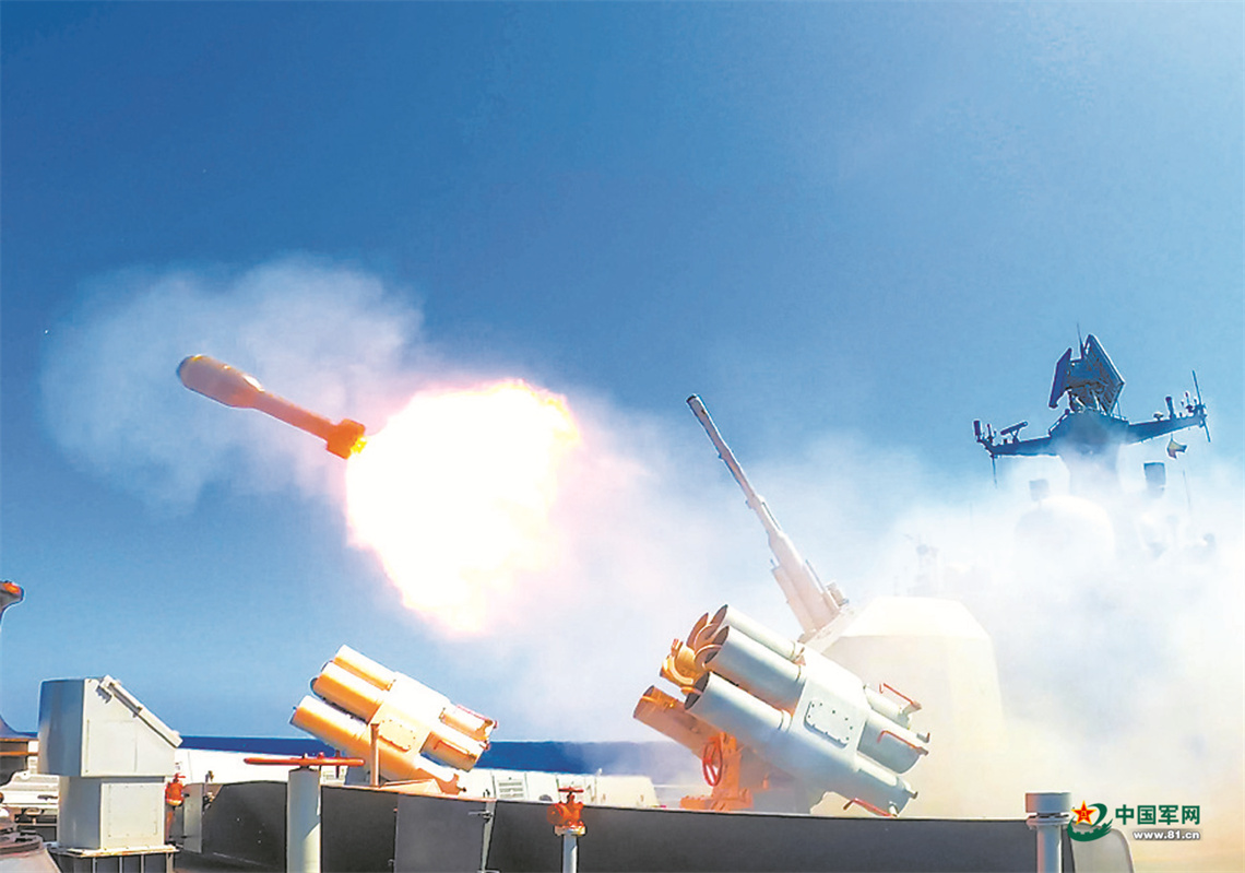 声呐兵不断将“敌”方位等信息传至指挥所。战机稍纵即逝,编队指挥员果断下达攻击命令。火箭深弹呼啸而出,目标海域随即腾起水柱……