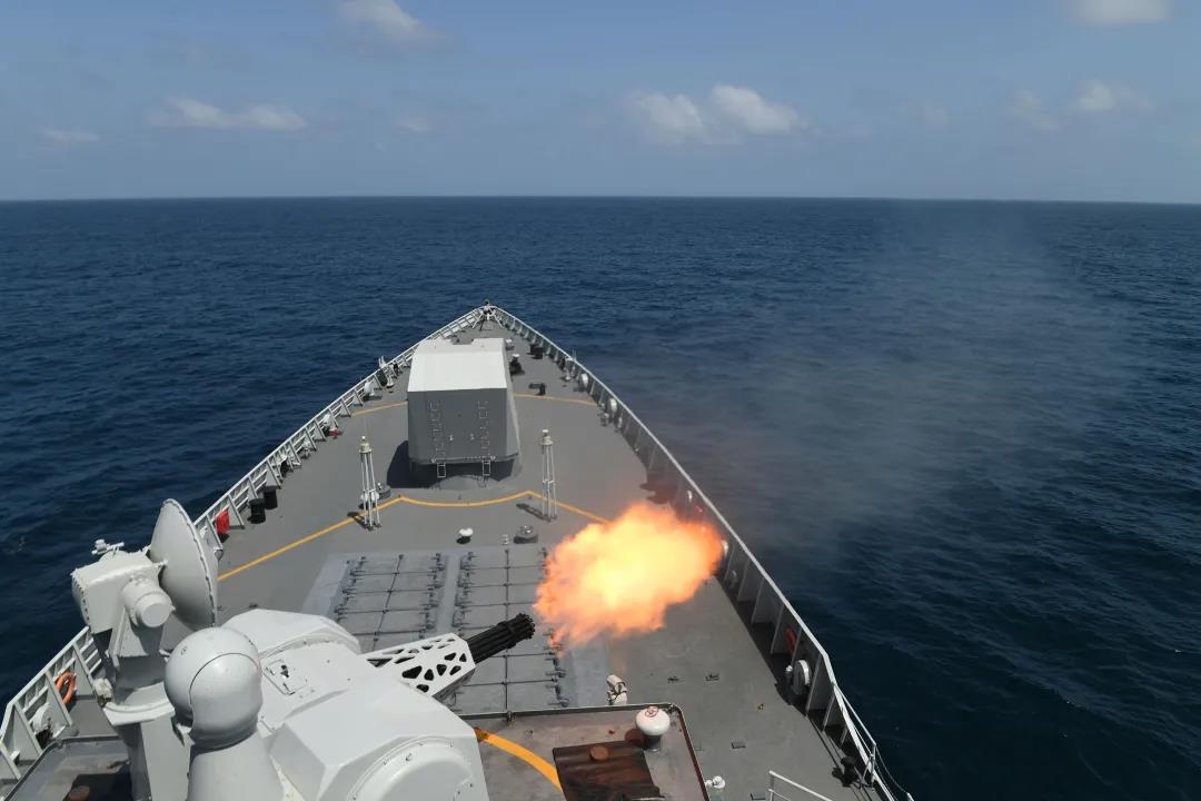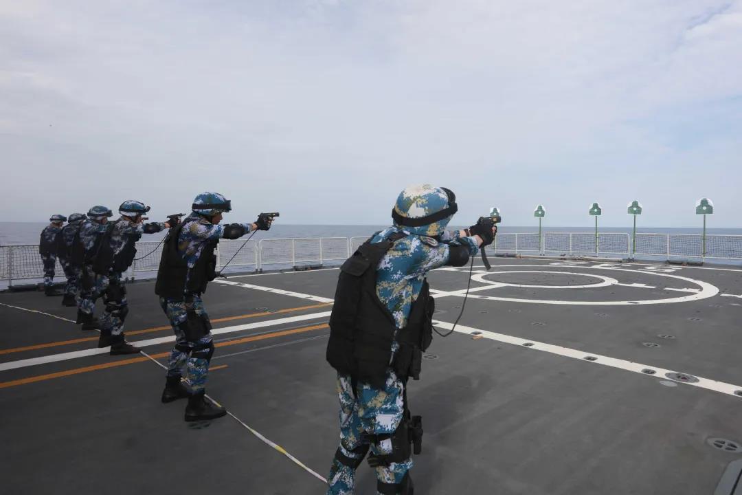 当地时间9月7日,正在亚丁湾、索马里海域执行护航任务的海军第35批护航编队在任务间隙,组织太原舰、荆州舰、巢湖舰进行实际使用武器训练,检验和锤炼编队指挥控制、战场感知、火力打击等遂行使命任务能力。
