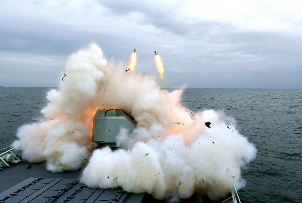 湘潭舰迅速转入夜间主炮对岸射击训练