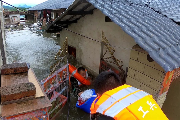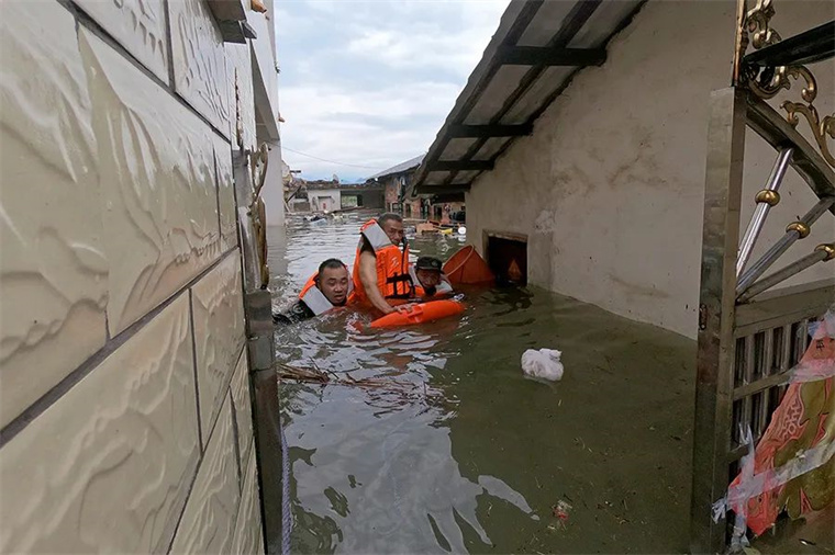 随后,救援官兵驾驶冲锋舟,携带救生圈、救生衣、消防绳等物资,沿着村子道路逐户排查,成功转移群众42人。
