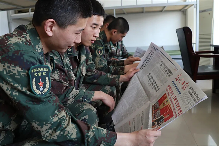 自全国进入两会时间以来,该部官兵便同步利用强军网专题网页、学习强国APP、微博“两会”话题讨论、新闻联播、领读报纸言论等渠道方式,广泛了解卫生、交通、金融、科技、教育等方面热点议题,坚持用理论武装头脑,全方位营造浓厚学习宣传氛围,确保将学贯全国两会精神落实落地、入脑入心。