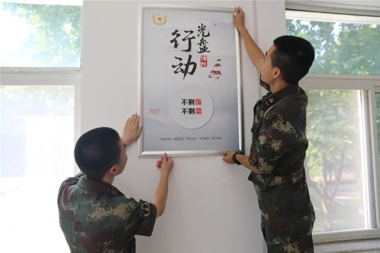 该部坚持营造浪费可耻节约为荣的营区氛围,带动辐射军人家属、地方合作单位和营区周边餐饮企业等落实“光盘行动”和节约理念。