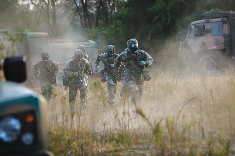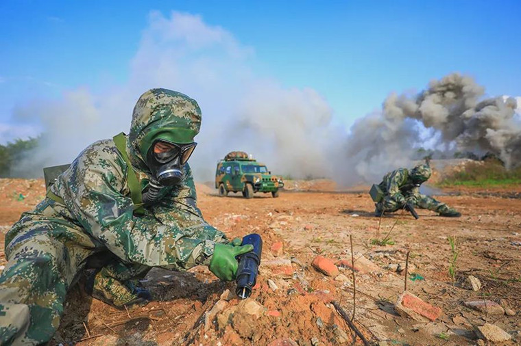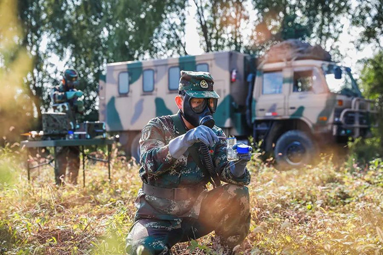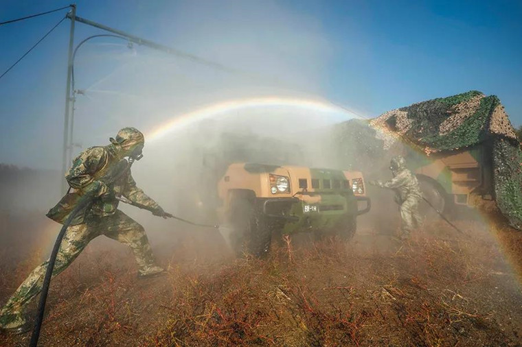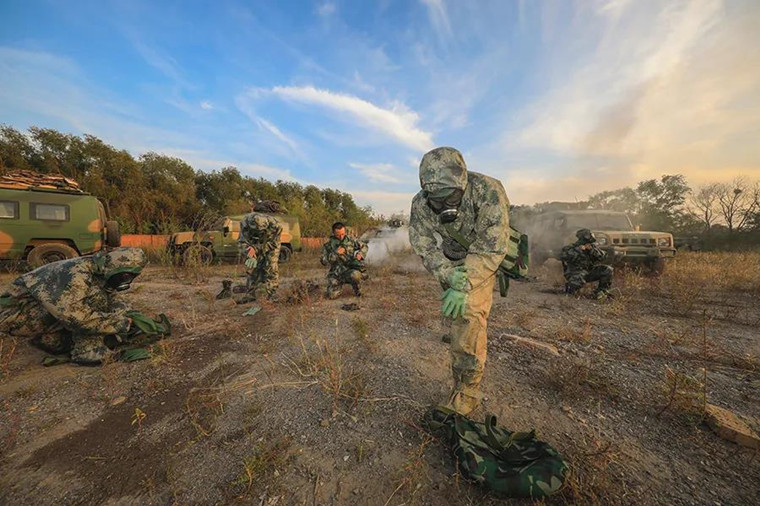近日,火箭军某部防化分队开展了一场以实战为背景的综合演练,针对部队应急反应、战场洗消、战地救护等多个科目进行强化训练。