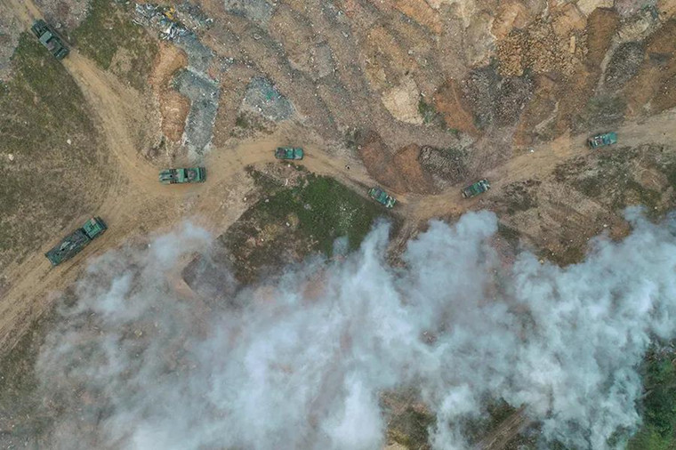 受领命令后,官兵迅速集结,驾驶车辆奔赴目标区域。
