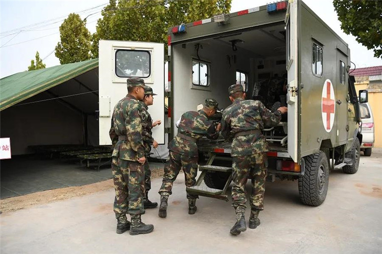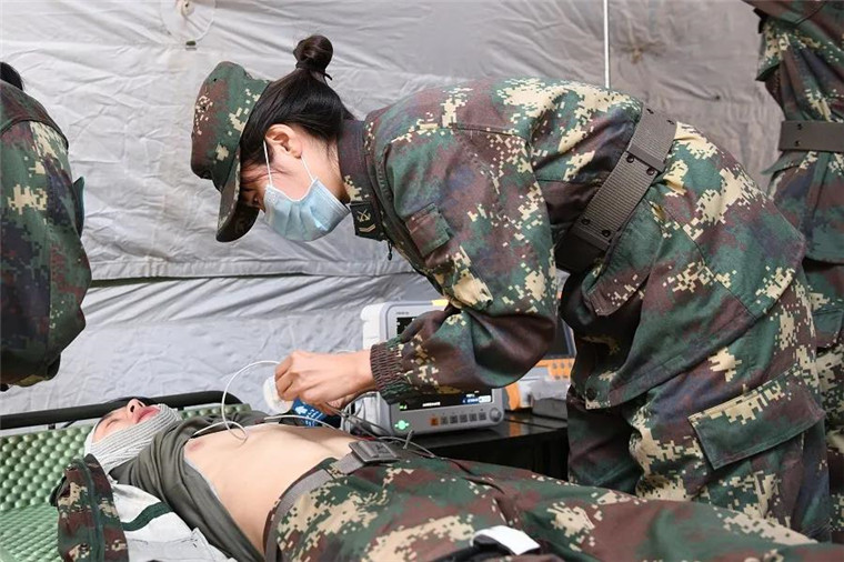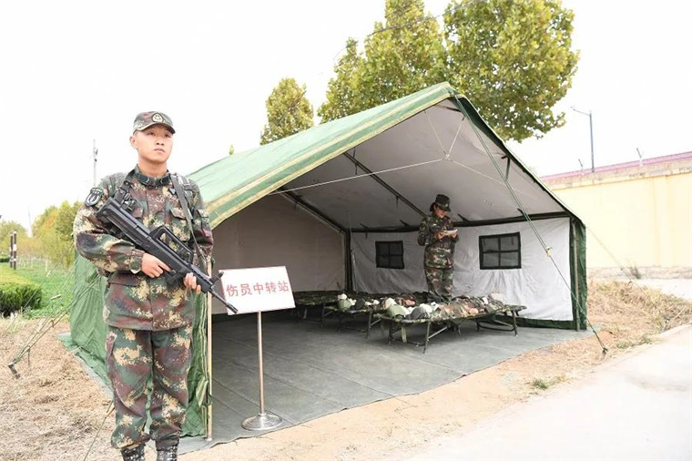 野战救护所里,医护人员严阵以待,药品、设备齐全,快速完成伤病员生命体征监护、复苏治疗及其他维持稳态等紧急救治。对重伤员,野战救护所在紧急救治的同时将其快速转运至中转站,与地方医院对接,开展进一步治疗。