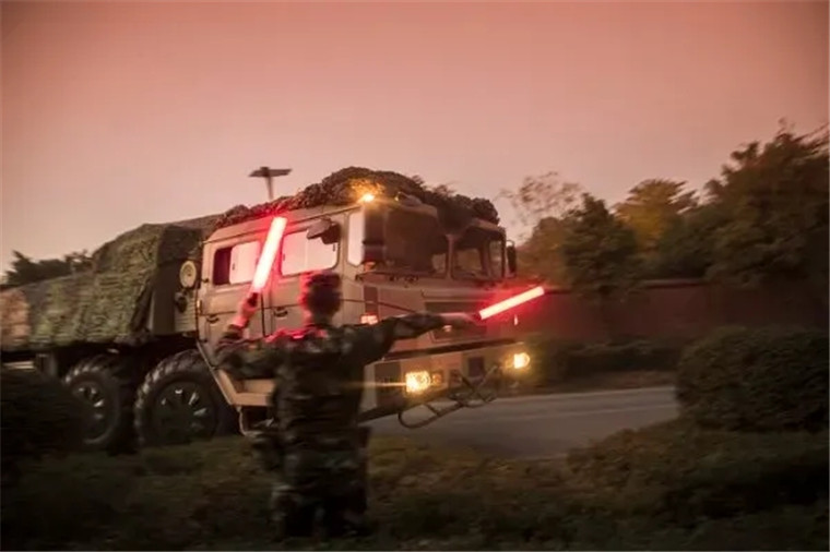 “拉大车辆间距,启动灯火管制!”车队正处于崎岖的盘山小路上,灯火管制无疑对驾驶员和指挥员的驾驶技术和心理素质带来极大考验。四级军士长虞开强凭借过硬技术,带领战友躲过侦察。