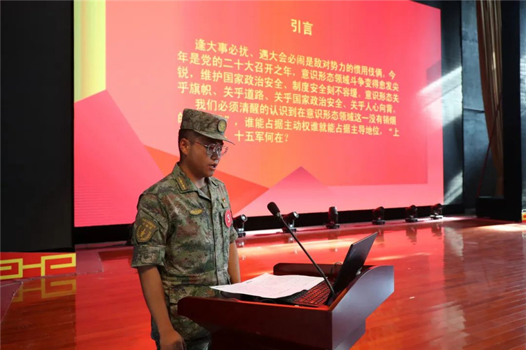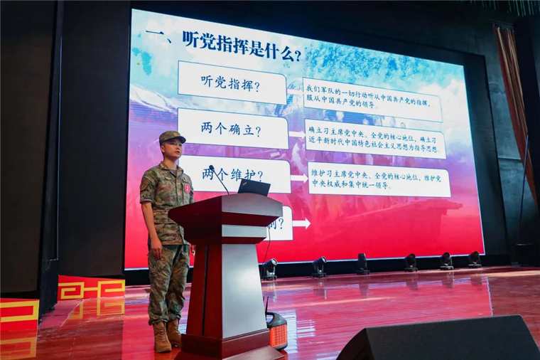 思想引导环节,将官兵日常学习、工作训练中遇到的“疑难杂症”搬上讲台,围绕网络舆情“热点问题”设置考题,对参赛人员临机处置能力进行了检验。该部班长骨干李杰,围绕“如何正确看待”这一命题展开3分钟随机教育,以自设晚点名的形式,让场下的观众设身处地、身临其境,获得评委一致好评。