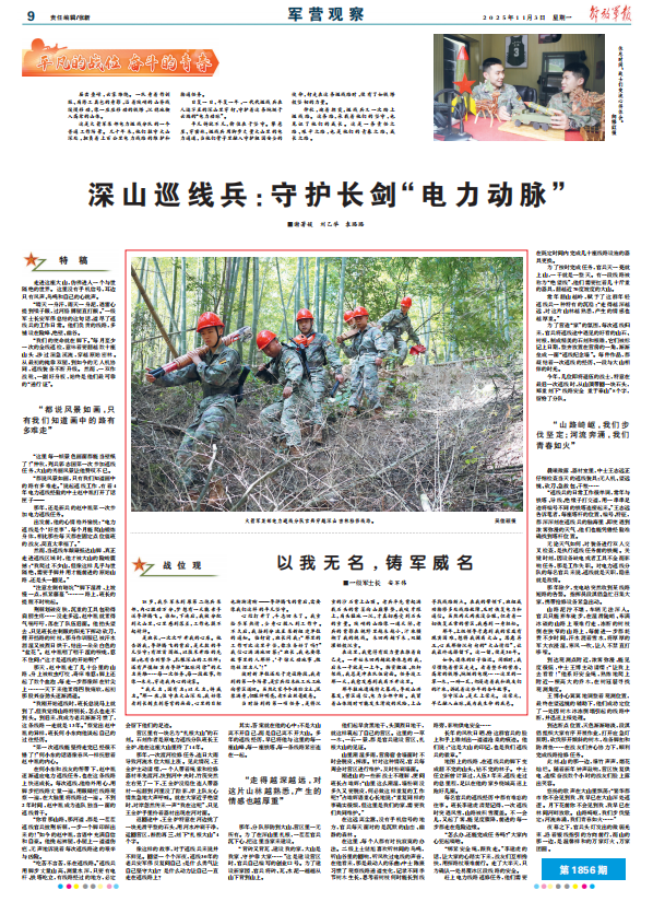 平凡铸就不凡,价值在于坚守。攀悬崖、穿密林,巡线兵用脚步丈量大山里的电力通道,当他们骨子里融入守护祖国安全的使命,行走在这条巡线路时,便有了如铁塔般坚韧的力量。