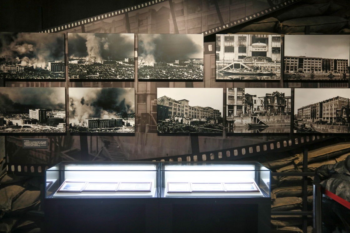 9月16日在四行仓库抗战纪念馆拍摄的“四行仓库保卫战”历史图片。