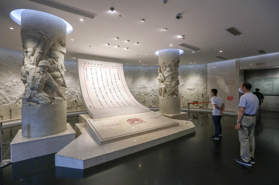9月16日,人们在四行仓库抗战纪念馆一楼观看谢晋元的一封家书。