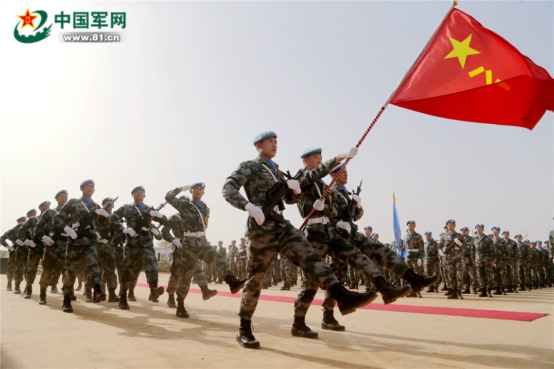 授勋仪式上,维和官兵接受检阅。 韩立建 摄