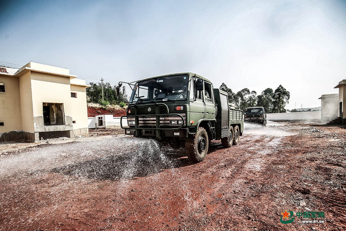 洗消车对核心区域地表进行洗消。