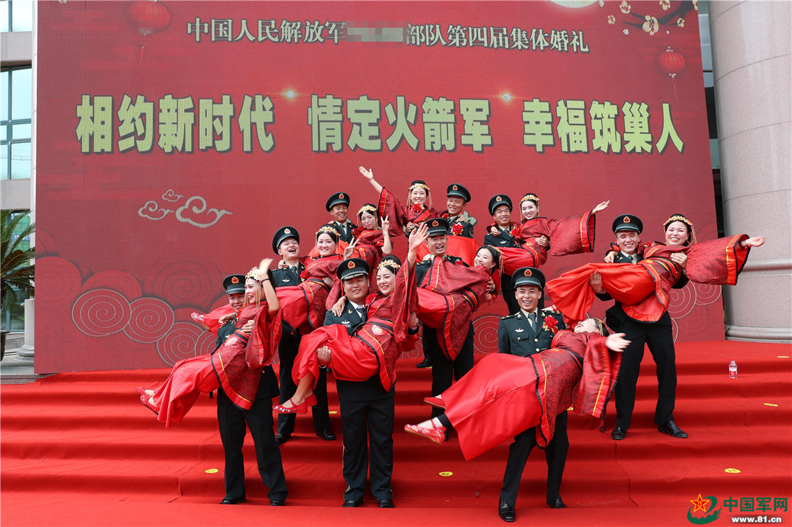 着"汉服"嫁"戎装"丨火箭军101对集体婚礼火爆军营