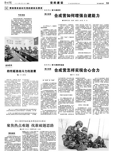 “如何完善优化营党委领导方式和管理模式”“新体制下营一级如何强化自建能力”……去年底,第81集团军基层营党委书记集训班上,大家围绕营党委书记开展工作容易遇到的17个具体问题展开研究讨论。